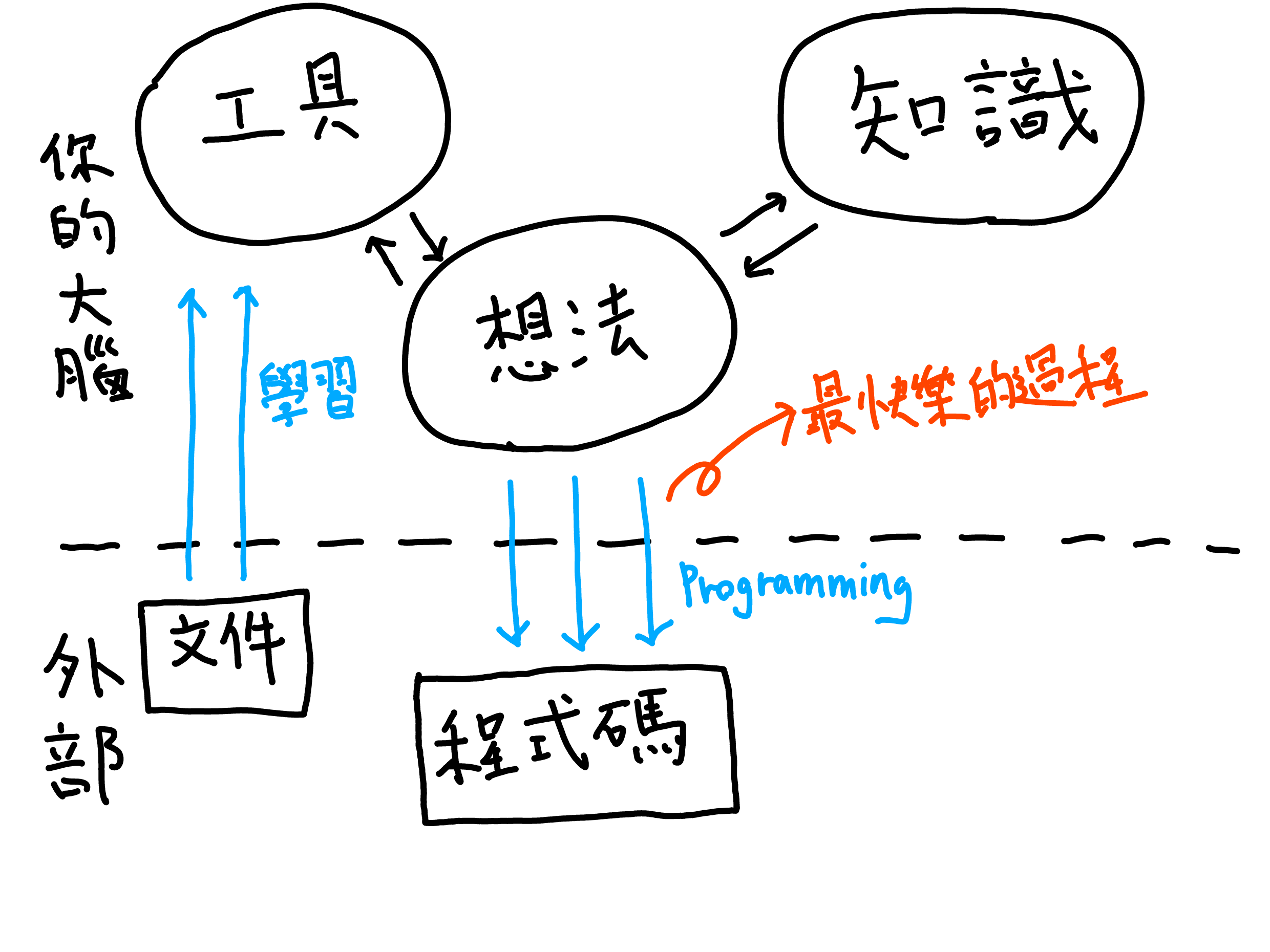 學習和寫程式,一個是輸入,另一個是輸出。我們無法邊吸氣邊唱歌,我們也無法在邊學習工具邊使用它。